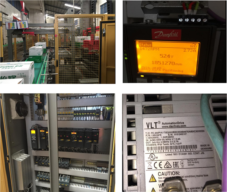 這次在東莞市莞怡食品飲料有限公司(生產(chǎn)怡寶品牌飲用水)的紙箱堆垛機上選用的丹佛斯 FC302+IMC 方案,通過現(xiàn)場實際運行證明 IMC 定位控制功能加上帶有編碼器反饋的異步電機拖動系統(tǒng),可以很好的達到原設備的功能和生產(chǎn)要求,客戶也對丹佛斯 FC302 系列變頻器高性能表現(xiàn)給予了強烈的肯定。